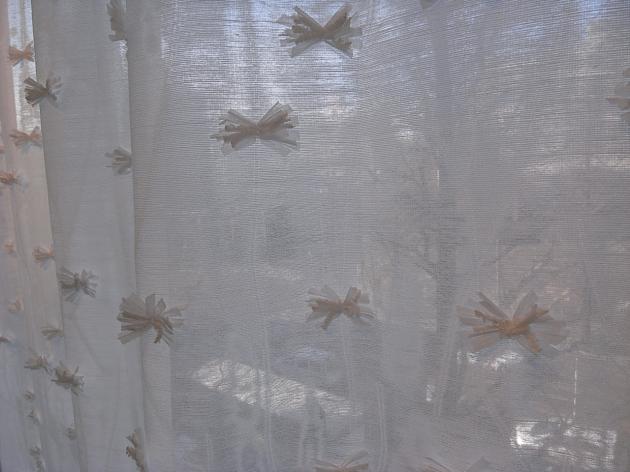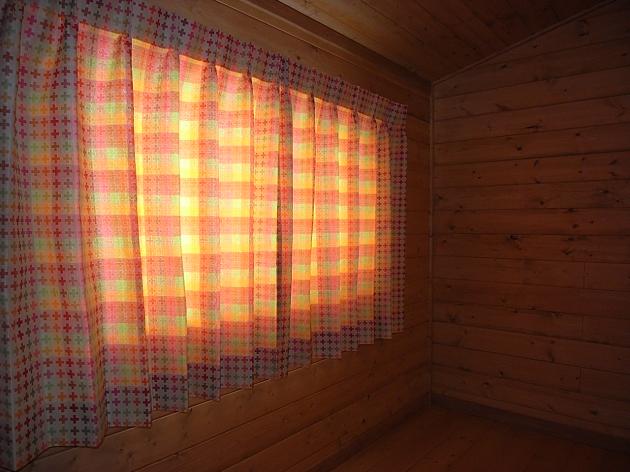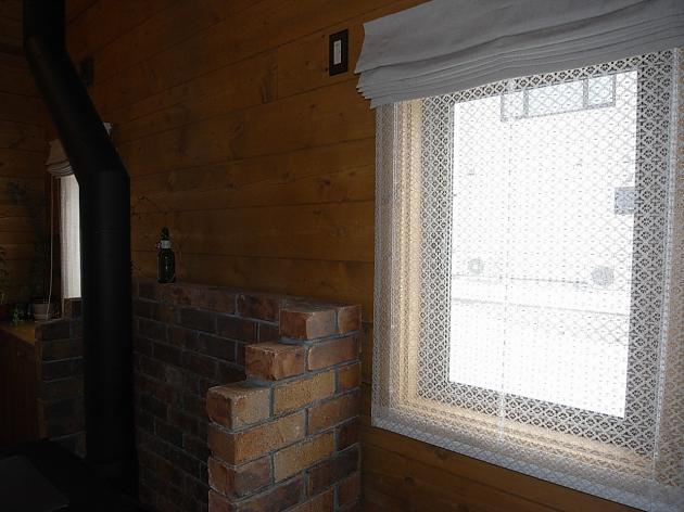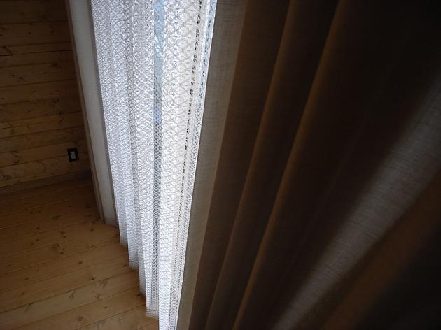 さて、今回も素敵なお部屋が出来上がりました。ログハウスは愛情をかけて育てていくようなものだと伺っておりましたので、カーテンも愛着が持てるものにしたいと選びました。リビングのドレープカーテンは麻のような風合いのフジエテキスタイルのFA2025を選んでみました。そして、ナチュラルクラッシックなテイストに相性のいいレースは川島織物セルコンのFT5373を。天然素材風の無地ドレープにフェミニンさがプラスされてとてもいい雰囲気になりました。縫製はフラットカーテンにしてソフトプリーツ仕上げに。薪ストーブ周りの小窓には同品番の組み合わせでプレーン×プレーンのダブルシェードでシンプルに。お部屋の雰囲気にうまく溶け込んで薪ストーブの重厚感とバランスのとれた仕上がりになりました。